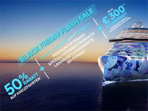 50% Rabatt auf Kreuzfahrte + 50% auf Free at Sea + 300 € Flugrabatt